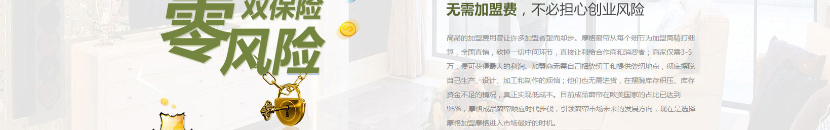 摩格(MOONGOOL)軟裝是萬(wàn)物暢聯(lián)(武漢)智能家居有限公司旗下知名品牌;源于家紡業(yè)發(fā)展初期的上世紀(jì)80年代初,產(chǎn)品涵蓋窗簾,墻布,墻咔,地毯,裝飾畫,木飾面,成品藝術(shù)漆等全屋軟裝體系,全國(guó)五大廠區(qū):廣州(華南)、武漢(華中)、北京、石家莊(華北)、海寧(華東)輻射全國(guó)各個(gè)地區(qū),第一時(shí)間出貨。以產(chǎn)品奢華、風(fēng)格齊全、靈活伸縮、設(shè)計(jì)獨(dú)特等優(yōu)勢(shì)成為行業(yè)內(nèi)專業(yè)化、正規(guī)化、標(biāo)準(zhǔn)化、品牌化、打造國(guó)際化運(yùn)作的領(lǐng)航者。自企業(yè)創(chuàng)立以來(lái),摩格“整店輸出”發(fā)展戰(zhàn)略成效顯著,目前在全國(guó)30多個(gè)省市自治區(qū)擁有加盟店一千多家,已經(jīng)形成了“中國(guó)成品窗簾加盟連鎖”的強(qiáng)大聯(lián)合運(yùn)營(yíng)模式。以精湛工藝以及領(lǐng)先于潮流的設(shè)計(jì)風(fēng)格頗得消費(fèi)者喜愛。如今的它,是健康、時(shí)尚、精致,實(shí)現(xiàn)夢(mèng)想生活的代名詞。